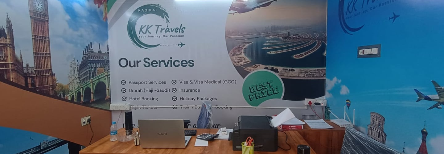 At KK Travels, we specialize in passport services, visa processing, hotel bookings, and more. Our dedicated team ensures seamless travel experiences tailored to your needs and preferences.